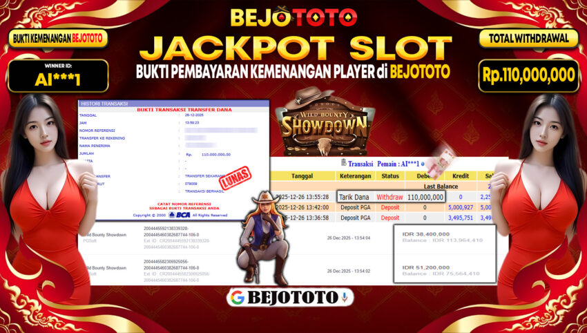 BEJOTOTO – Selamat kepada User id : AI***1 Telah berhasil mendapatkan kemenangan besar pada permainan WILD BOUNTY SHOWDOWN Dengan kemenangan Sebesar Rp.110,000,000-. Setelah mengisi formulir withdraw dengan kurung waktu hanya 5 – 10 menit pihak BEJOTOTO sudah melakukan transfer kepada pemilik Userid dan dana sudah dapat di cairkan oleh pemenang. Bukti pembayaran yang kami berikan merupakan bukti pembayaran yang SAH / VALID yang langung di dapatkan melaui tanda transfer transaksi dari Bank yang di tuju.